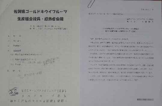 View large キウイフルーツ 初の試みに! 2020年7月9日 木曜日 本日は、佐賀県ゴールドキウイフルーツ生産組合役員・担当者会の開催となる。第15回通常総会にの開催に向けた協議。今年は、新型コロナウイルスに翻弄られて初の経験となる書面決議による開催の運びで進む事に。色々な経験となる成り。kaji Previous 活性策を! Next 収まって! Related postsMore detailsキウイフルーツぐっすり! 2025年2月8日(土曜日) at 11:29 AM by kaji キウイフルーツなど落葉果樹では休眠が有り、休眠には自発休眠と...More detailsキウイフルーツ確認! 2025年2月7日(金曜日) at 2:16 PM by kaji ゼスプリ防除指針日本産キウイフルーツ2025の提示を受けて、...More detailsキウイフルーツ負けてない! 2025年1月30日(木曜日) at 5:48 PM by kaji 早やくも年明け一か月、現場では剪定から誘引作業に進行中なり。...More detailsキウイフルーツ気持ち新たに! 2025年1月7日(火曜日) at 5:49 PM by kaji 年も明け、心新たに剪定作業に邁進なり。年末からと明けてからの...More detailsキウイフルーツ謹賀新年! 2025年1月1日(水曜日) at 7:58 AM by kaji 明けましておめでとうございます。今年も宜しくお願いいたします...