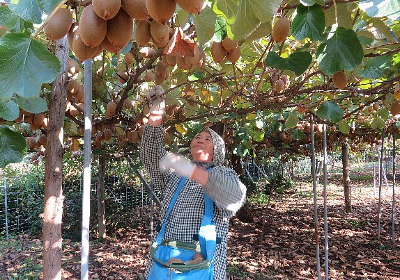 View large キウイフルーツ 秋さ中! 2023年10月26日 木曜日 G3サンゴールドの集荷・選果からバトンを受けてホート16の収穫が始まった。佐城地区のKさんの園地では、二人でにこやかな収穫の最中なり。今年は、生育段階の雨周りが良く果実の肥大と揃いは極めて良好成り。収穫の折の生産農家の笑顔は、有無を言わせない穏やかさで大吉なり。 Kaji Previous 美味しさ届け! Next もう次年へ! Related postsMore detailsキウイフルーツぐっすり! 2025年2月8日(土曜日) at 11:29 AM by kaji キウイフルーツなど落葉果樹では休眠が有り、休眠には自発休眠と...More detailsキウイフルーツ確認! 2025年2月7日(金曜日) at 2:16 PM by kaji ゼスプリ防除指針日本産キウイフルーツ2025の提示を受けて、...More detailsキウイフルーツ負けてない! 2025年1月30日(木曜日) at 5:48 PM by kaji 早やくも年明け一か月、現場では剪定から誘引作業に進行中なり。...More detailsキウイフルーツ気持ち新たに! 2025年1月7日(火曜日) at 5:49 PM by kaji 年も明け、心新たに剪定作業に邁進なり。年末からと明けてからの...More detailsキウイフルーツ謹賀新年! 2025年1月1日(水曜日) at 7:58 AM by kaji 明けましておめでとうございます。今年も宜しくお願いいたします...