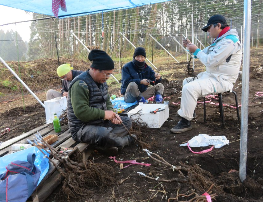 接ぎ木技術の研修会の実施。技術は、世界共通でマスターする価値…