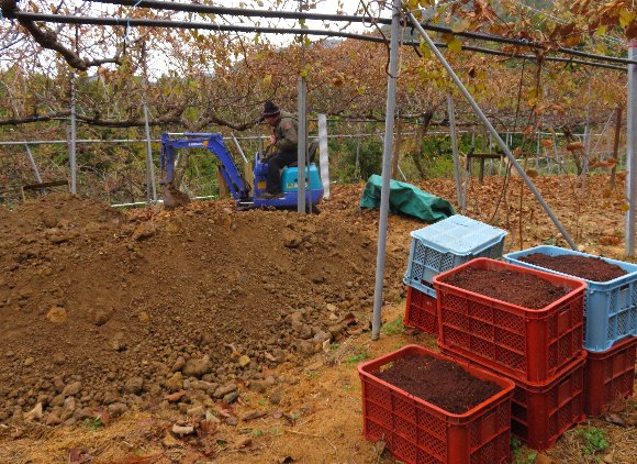 新しい品種への更新と寒害対策への対応で防寒を兼ねた試行は、嬉…