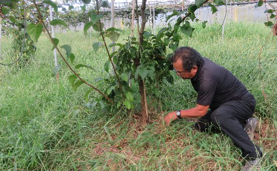 天気も締まり繁茂した園地の新梢管理で果実品質のアップを図る。…