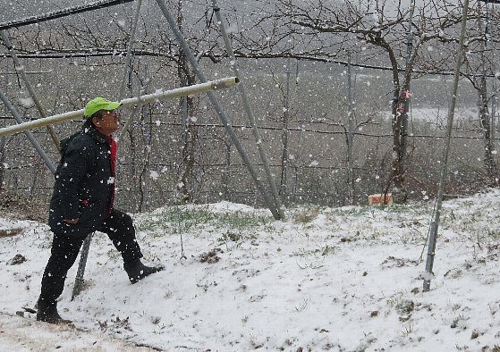 今年の冬は、降雪多く寒さも厳しい冬となっている。落葉果樹に取…